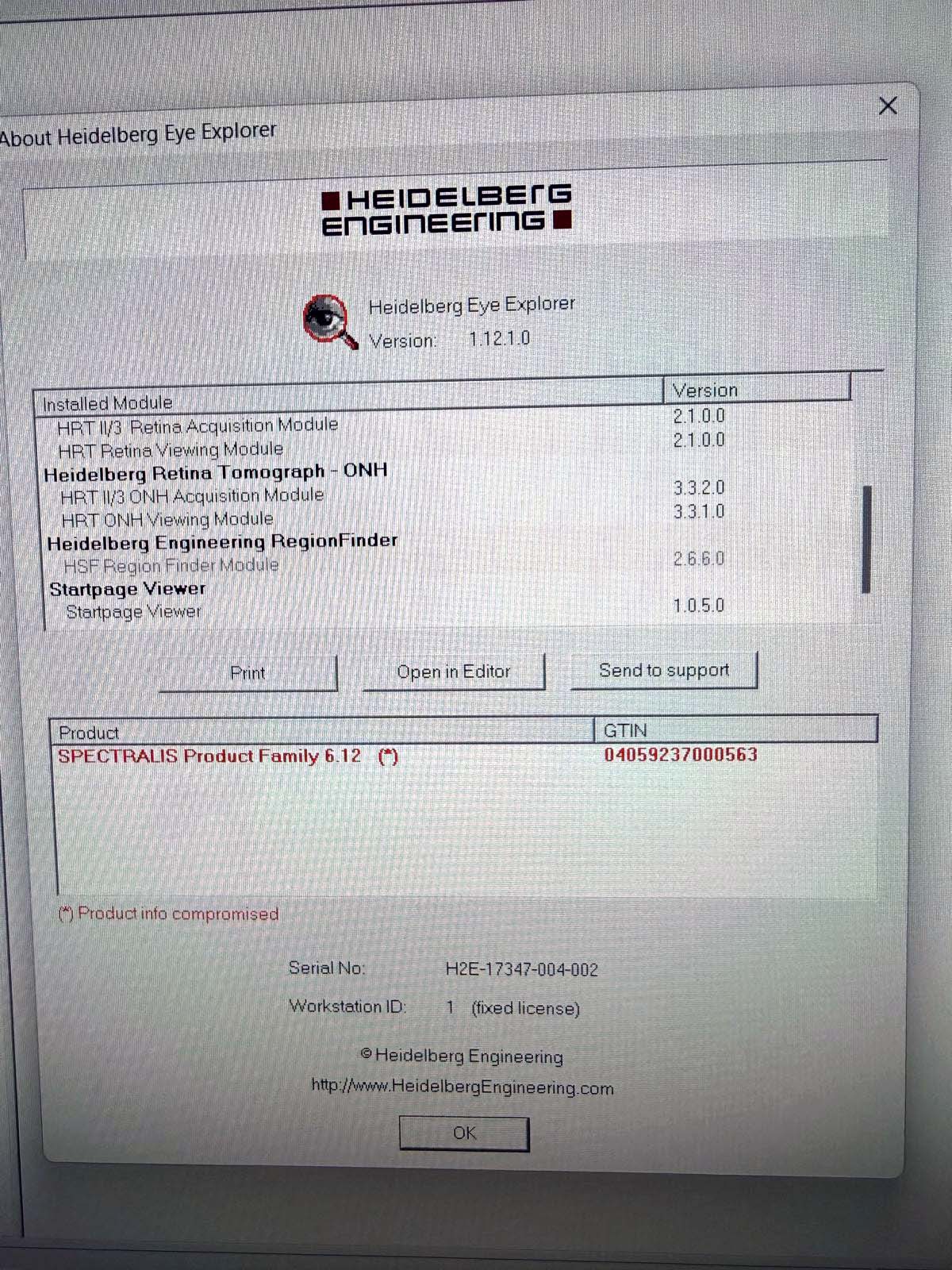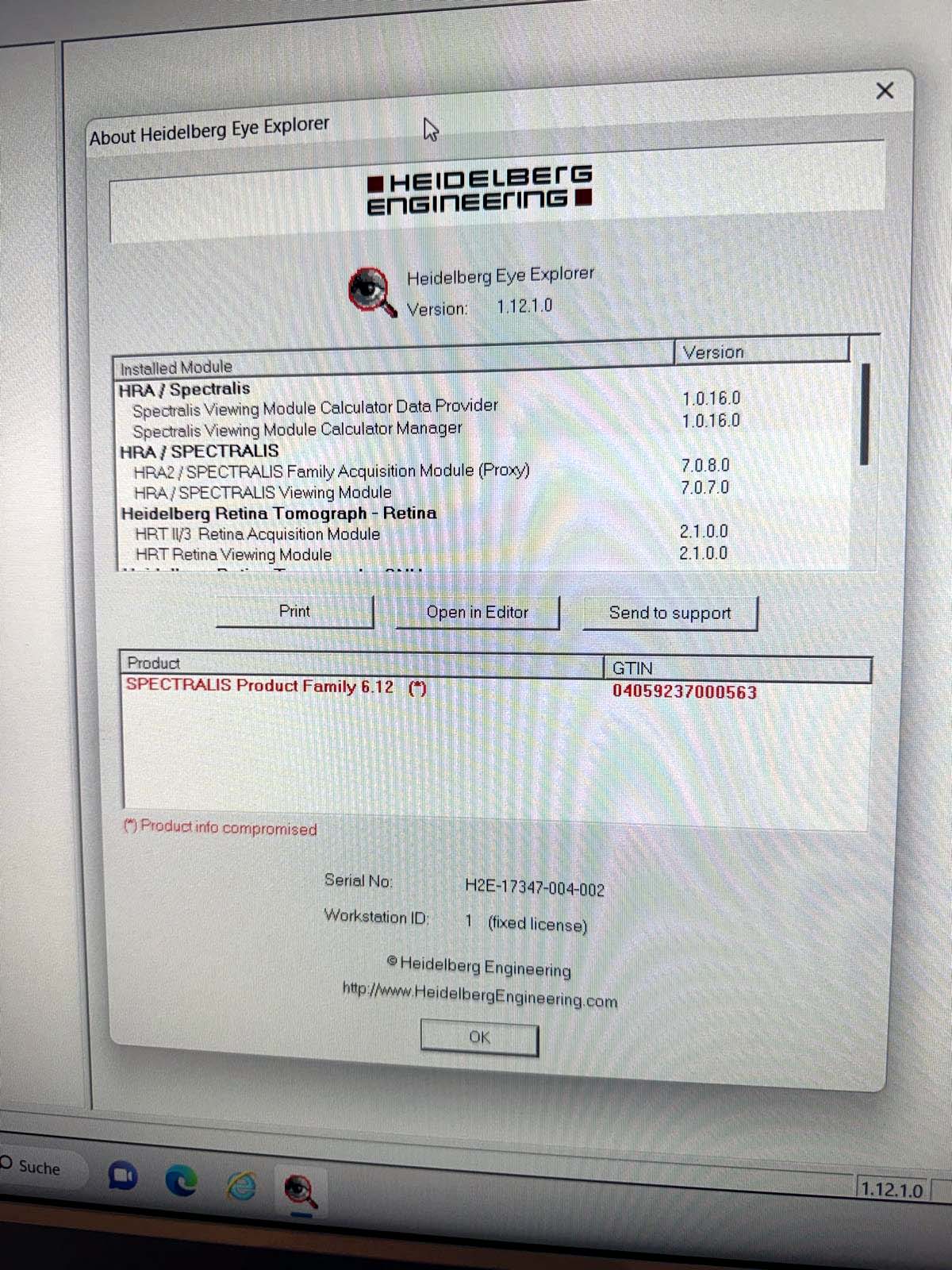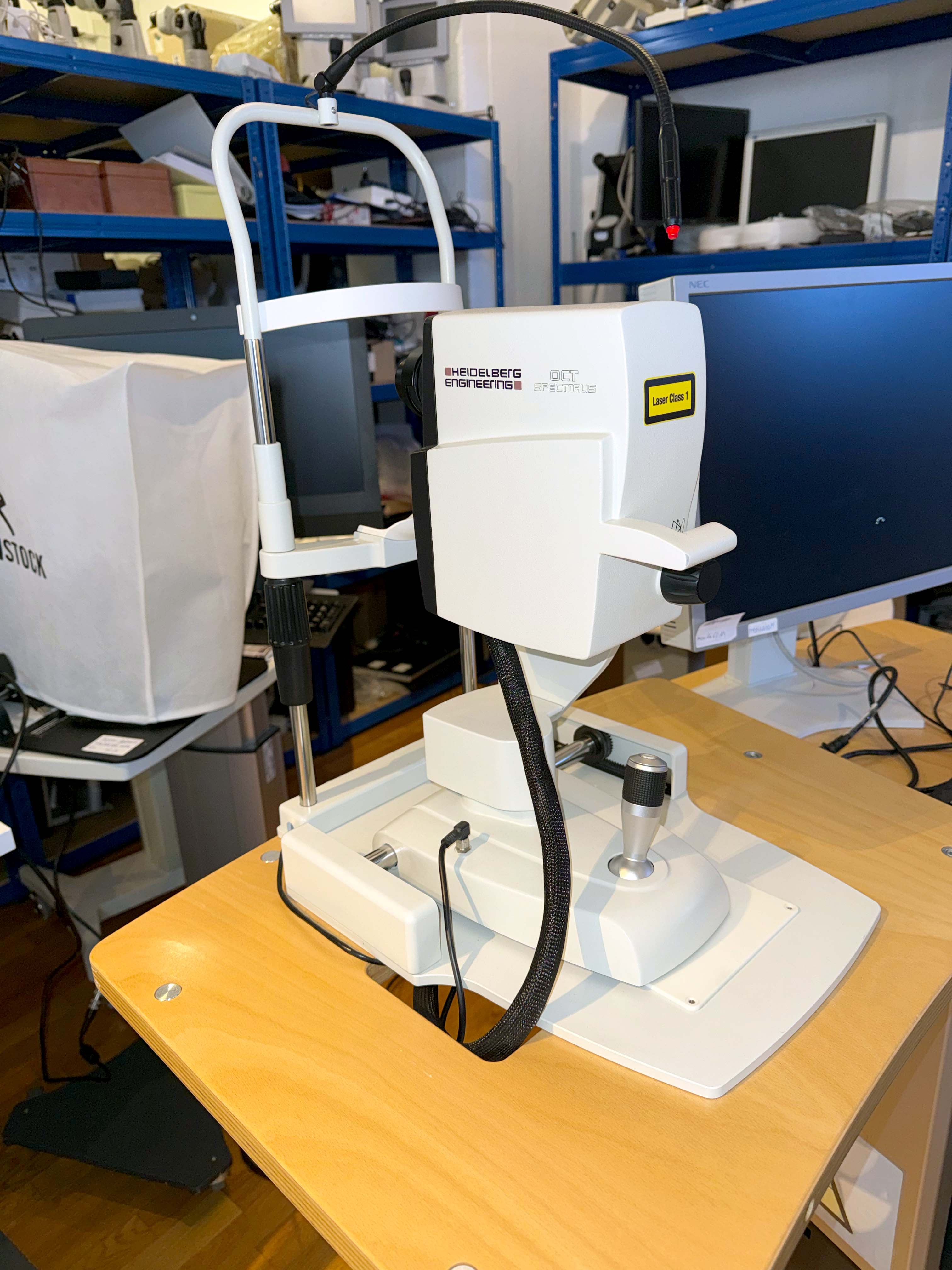 Heidelberg Spectralis OCT 2012, with wide-angle and anterior modules (2012), and Heidelberg Eng. HRT II 2001, including glaucoma and retina modules. Spectralis software version 7. PC, Windows 11, with integrated software for operating the HRT II and OCT. Original lifting table with separate lift tables on the left and right. Checked by Heidelberg Engineering.