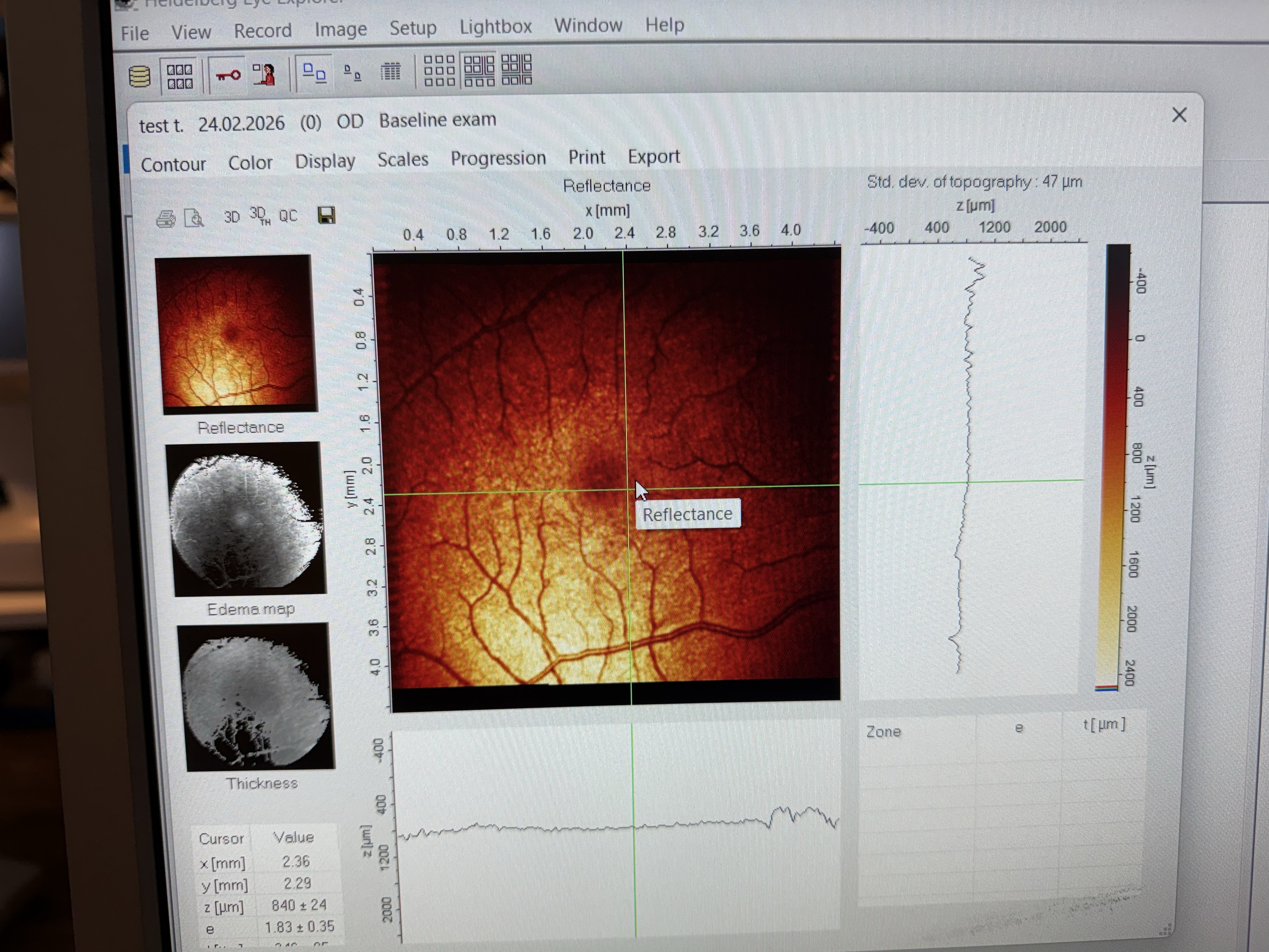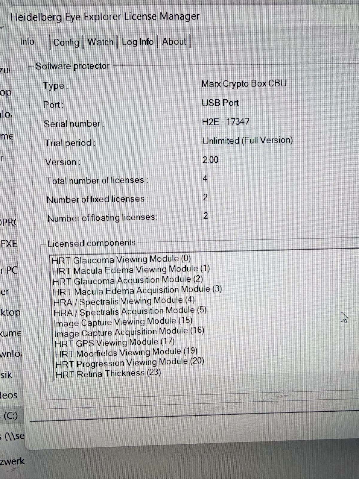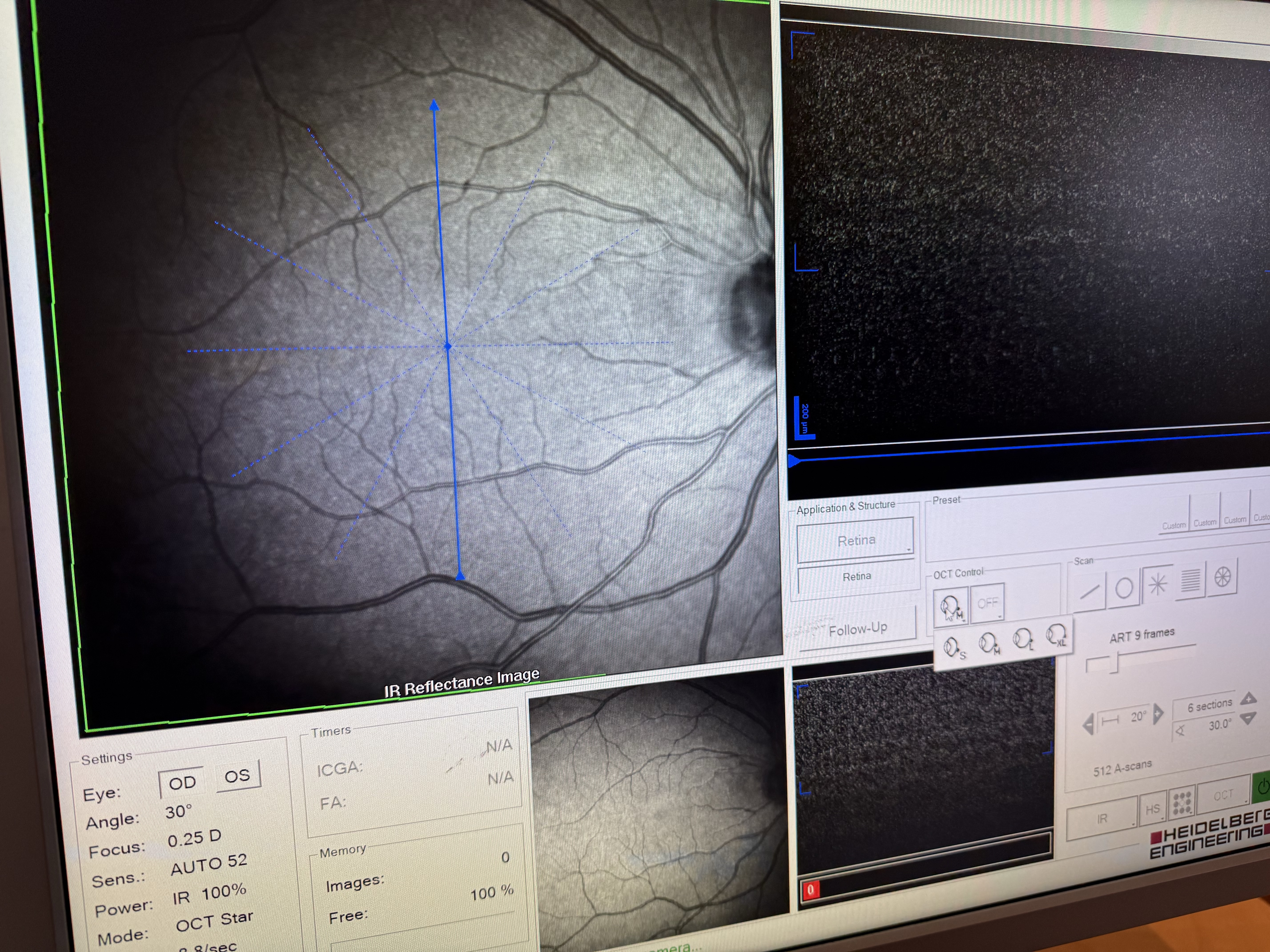 Heidelberg Spectralis OCT 2012, with wide-angle and anterior modules (2012), and Heidelberg Eng. HRT II 2001, including glaucoma and retina modules. Spectralis software version 7. PC, Windows 11, with integrated software for operating the HRT II and OCT. Original lifting table with separate lift tables on the left and right. Checked by Heidelberg Engineering.