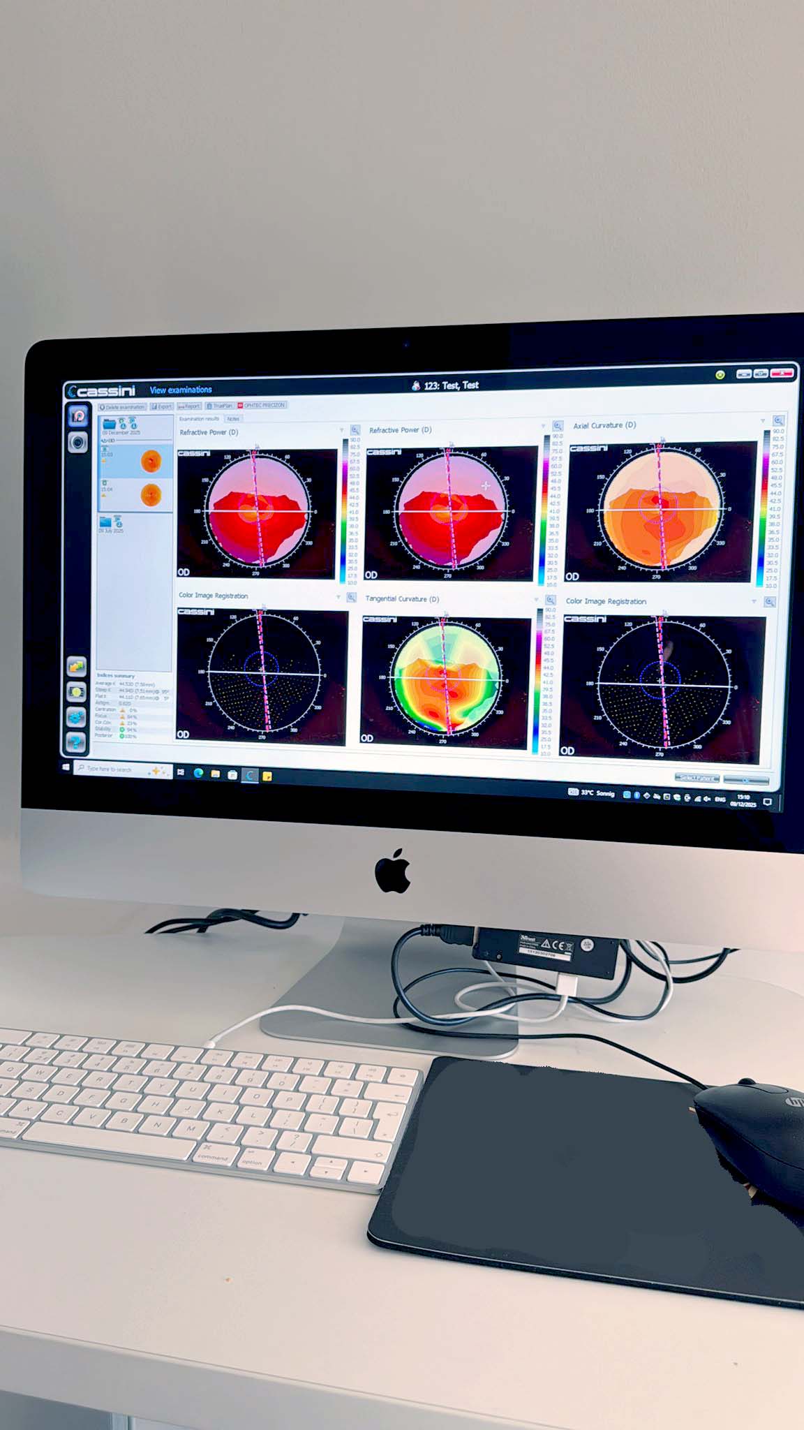 Including lifting table, Apple iMac, installed Software Cassini. Topography mapping includes Axial, Refractive, Tangential, and Elevation
