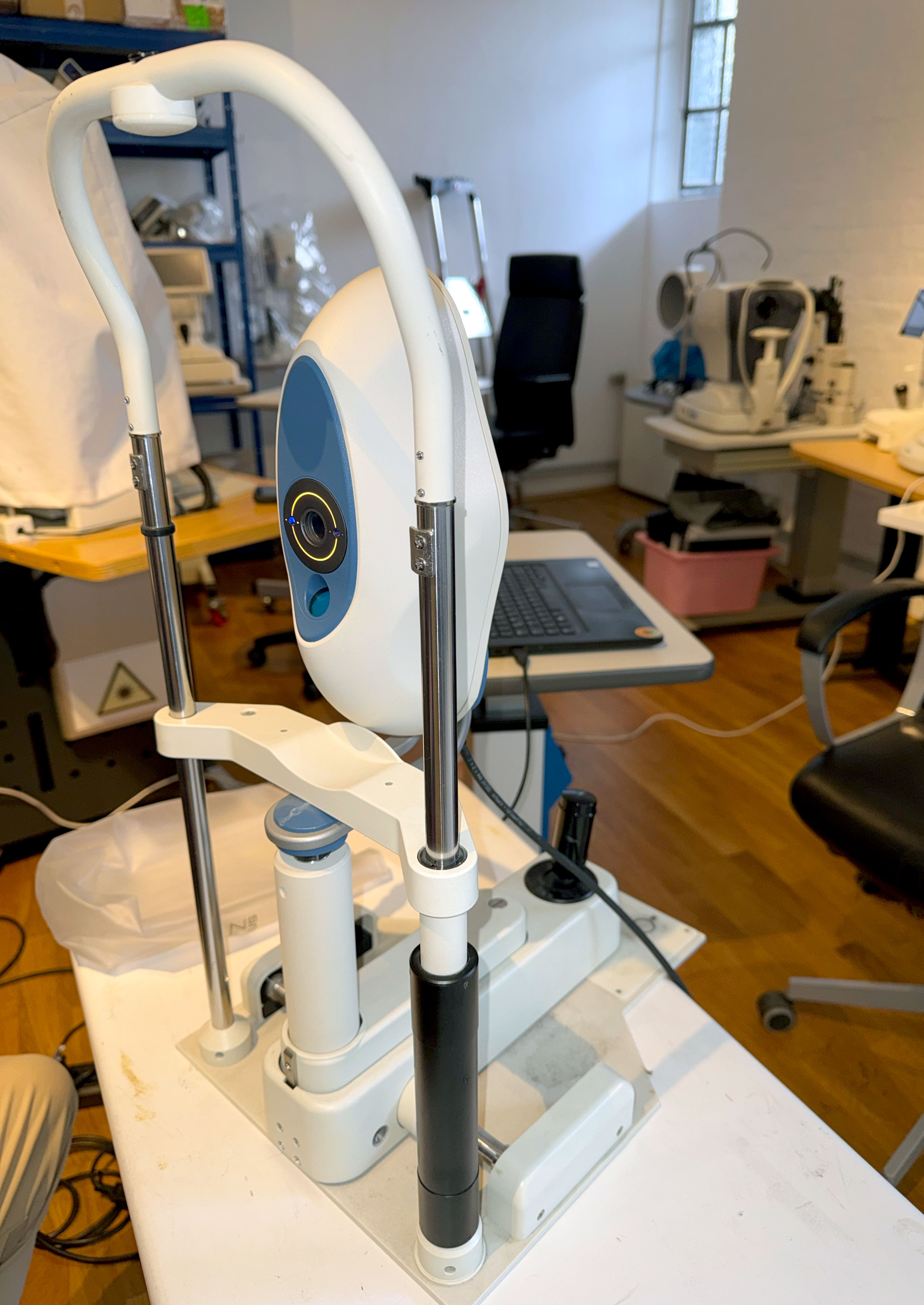 Included: Oculus Pachycam device, Pachycam software V. 115r, Power supply, USB connection cable, Chin rest, and base plate. In the best condition.