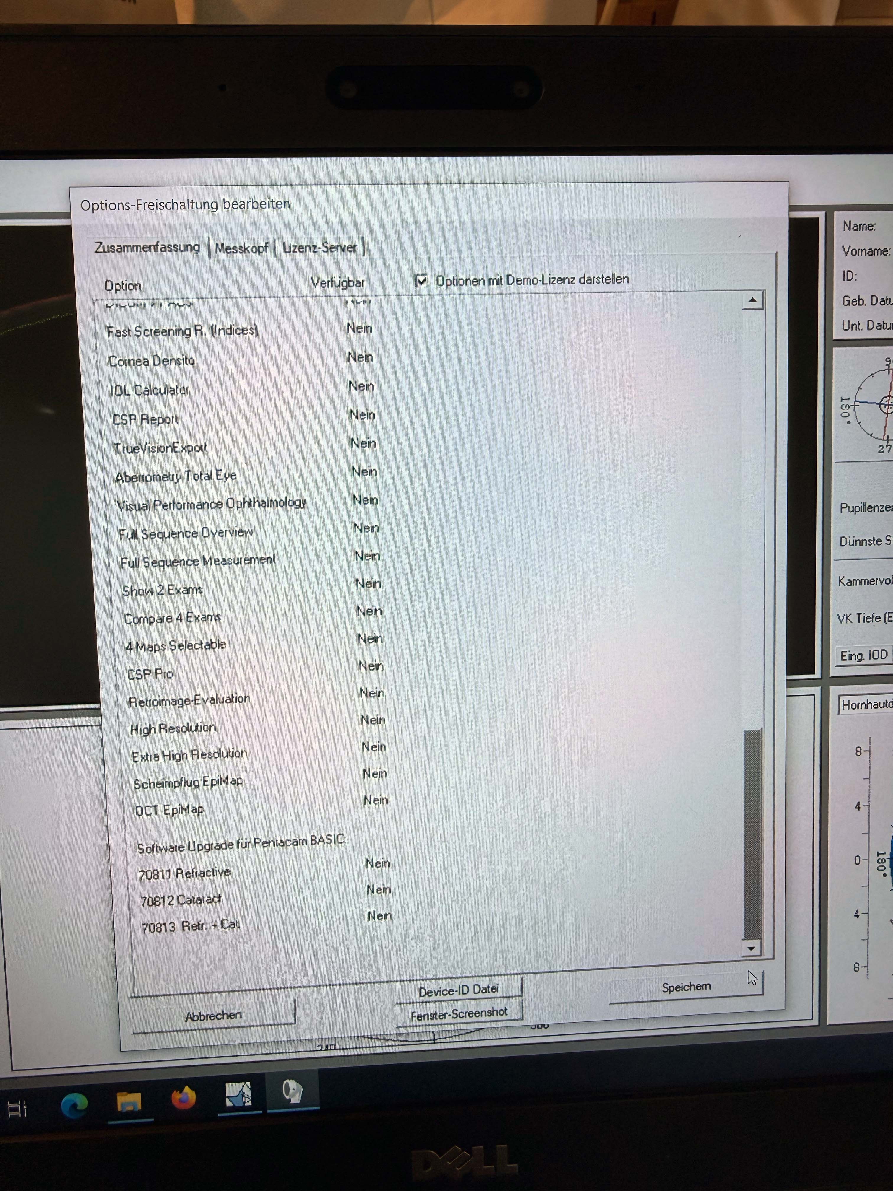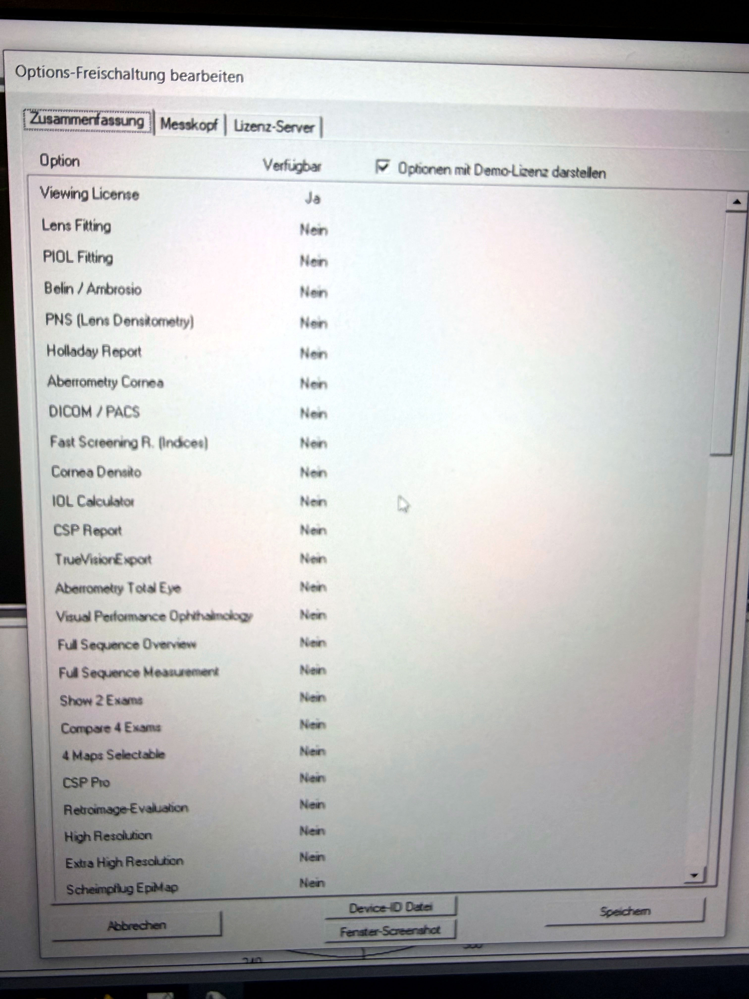 Standard configuration only. License Note: No additional dongle is included for optional software modules (e.g., Belin/Ambrosio, Holladay Report). Functionality: Fully functional and tested. Status: Ready for immediate use with standard diagnostic features.
