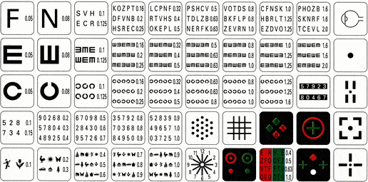 manual. With charts: Landolt, Letters, Child, Snellen.